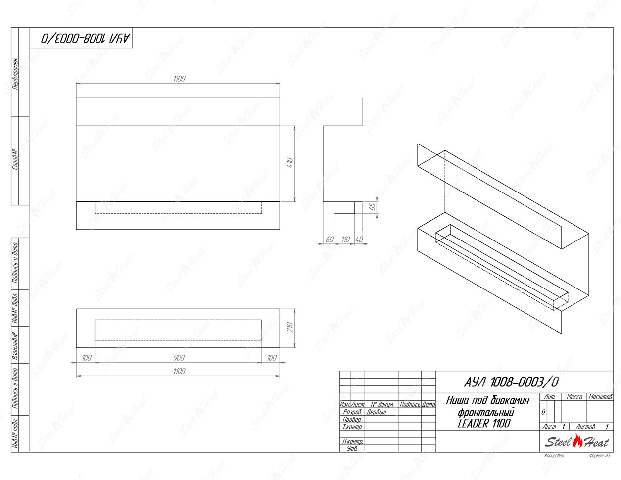 Встраиваемый Биокамин фронтальный SteelHeat Leader 1100предназначен для встраивания в глухие ниши из гипсокартона, кирпича, пеноблоков, бетона.