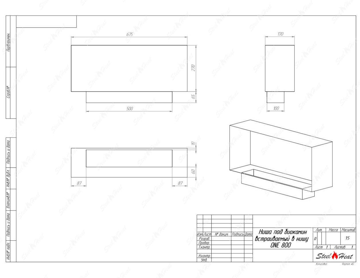 Встраиваемый Биокамин SteelHeat ONE-H 800 предназначен для встраивания в глухие ниши из гипсокартона, кирпича, пеноблоков, бетона.