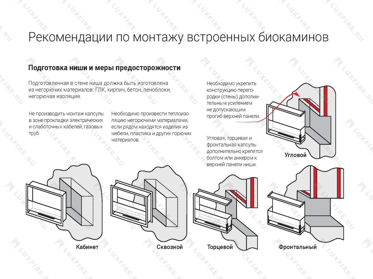 Представляет собой сборную металлическую конструкцию класса М, способную создать полуоткрытое безопасное пространство для огня c топливным блоком Lux Fire 500 М ограниченную закаленным стеклом с трех сторон в больших помещениях от 24 м2
